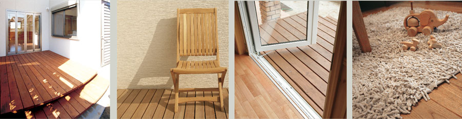 お風呂の前に広がるデッキはパブリックスペースから隠れたプライベートなコーナー。 格好を気にせずデッキに腰かけてお風呂上りにのんびりと過ごせるのはそのスペースならでは。 夏には子供たちの水遊び場としても使えます。