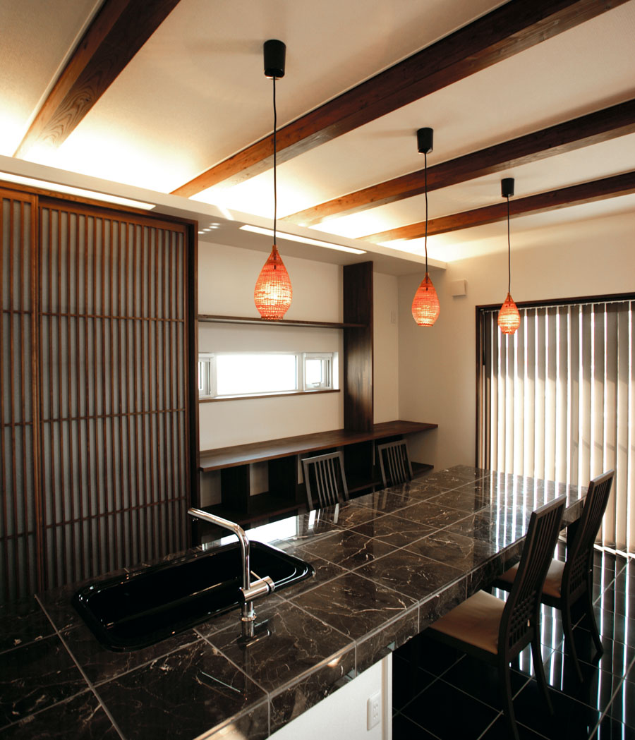 キッチンとテーブルを並べて。